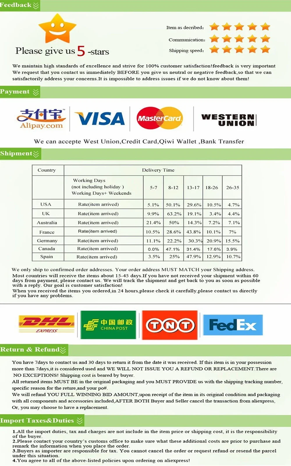 🚚 We are not responsible for delays caused by the courier.