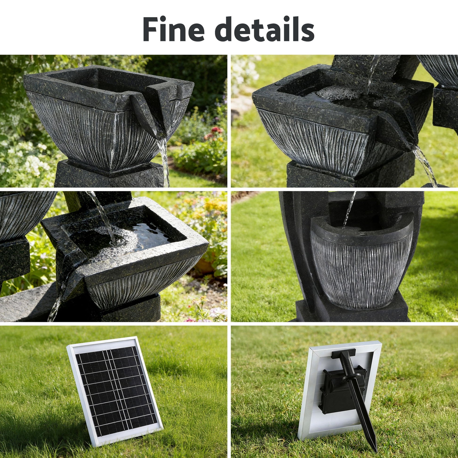 Gardeon Solar Fountain Water Feature Outdoor Fountain Indoor 5-Tier Bowl Cascading Grey