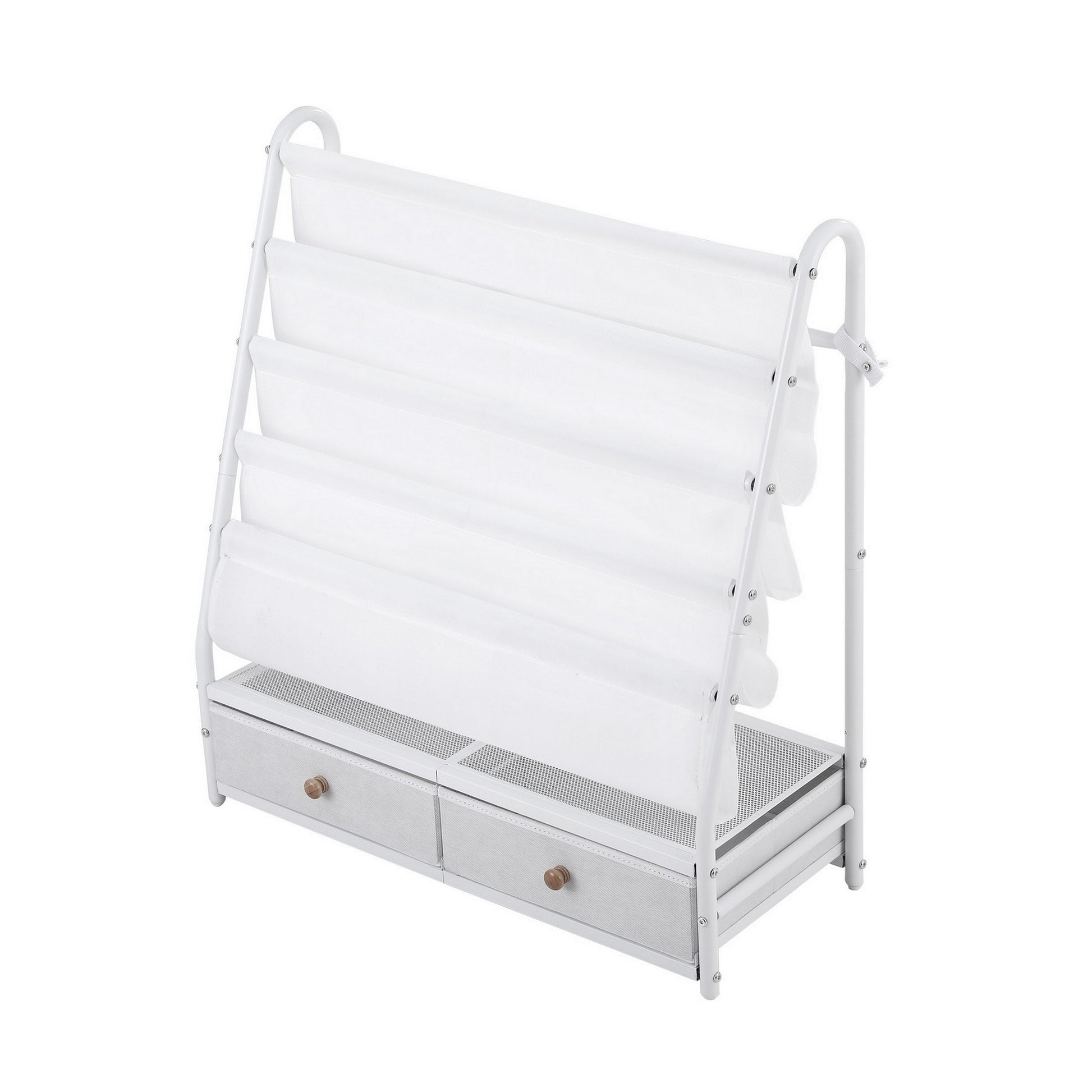 Keezi Kids Bookshelf Metal Storage Rack Toy Organiser Display Shelf Drawer White