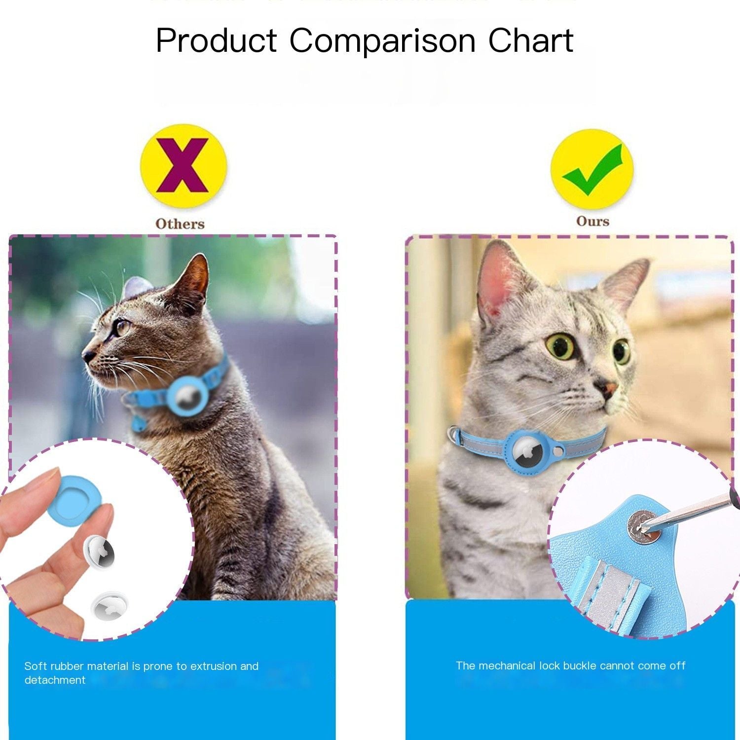 Airtag tracker case, anti-missing pet location collar, cat reflective bell collar