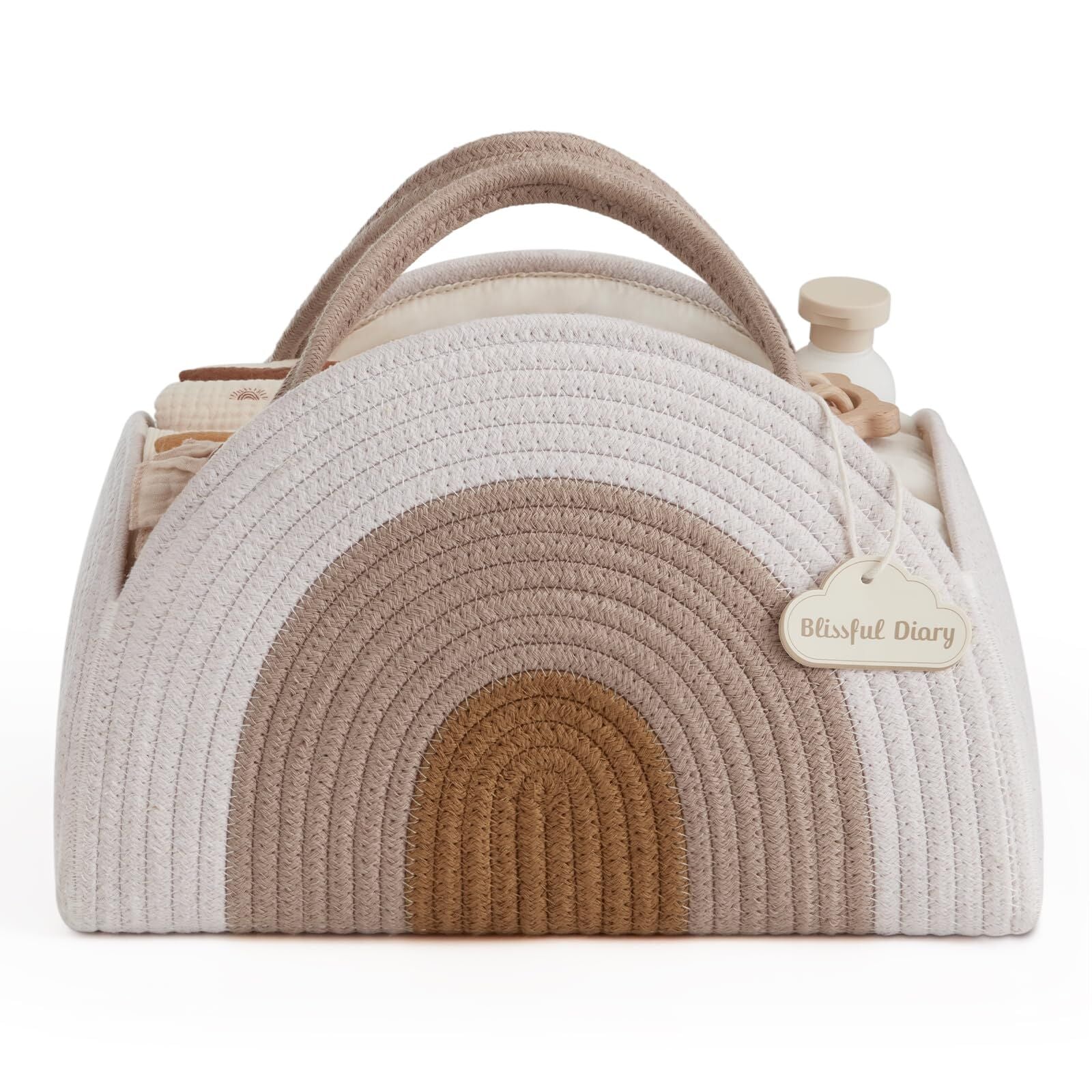 With its charming rainbow-inspired pattern, this diaper basket adds a touch of boho-chic charm to any nursery décor. Its not just functionalits a stylish centerpiece that complements neutral tones and natural textures. Parents love how it transforms clutter into order, reducing stress during busy diaper changes and daily routines.