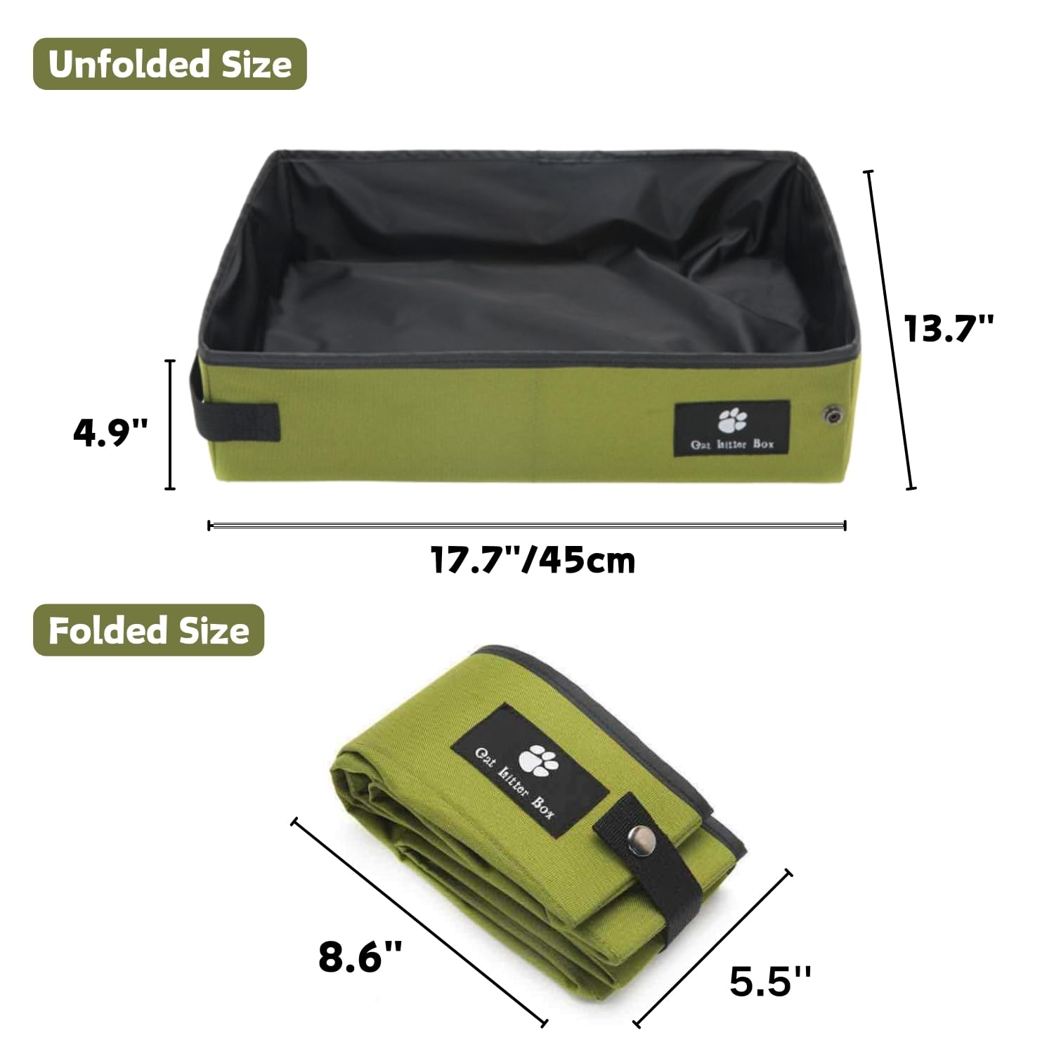 Portable Foldable Cat Litter Box Waterproof, Leak-Proof Travel Cat Toilet with Large Opening, Ideal for Camping, Hotel Stays, Road Trips (Green)