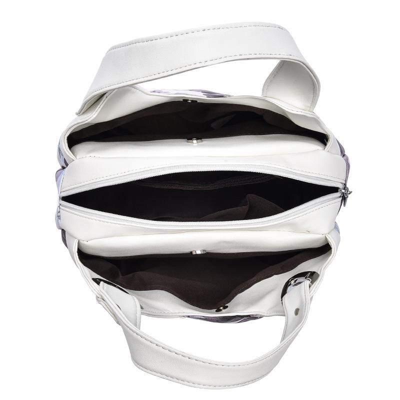 Soft Leather Women Handbag - White Handle Ink Flower