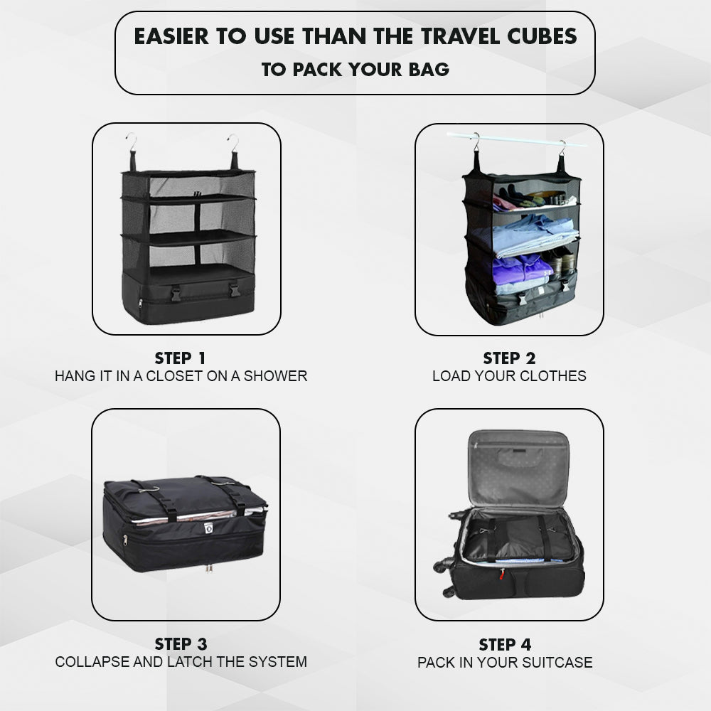 Vagooz Foldable 3 Shelf Travel Camping Organizer with Hook